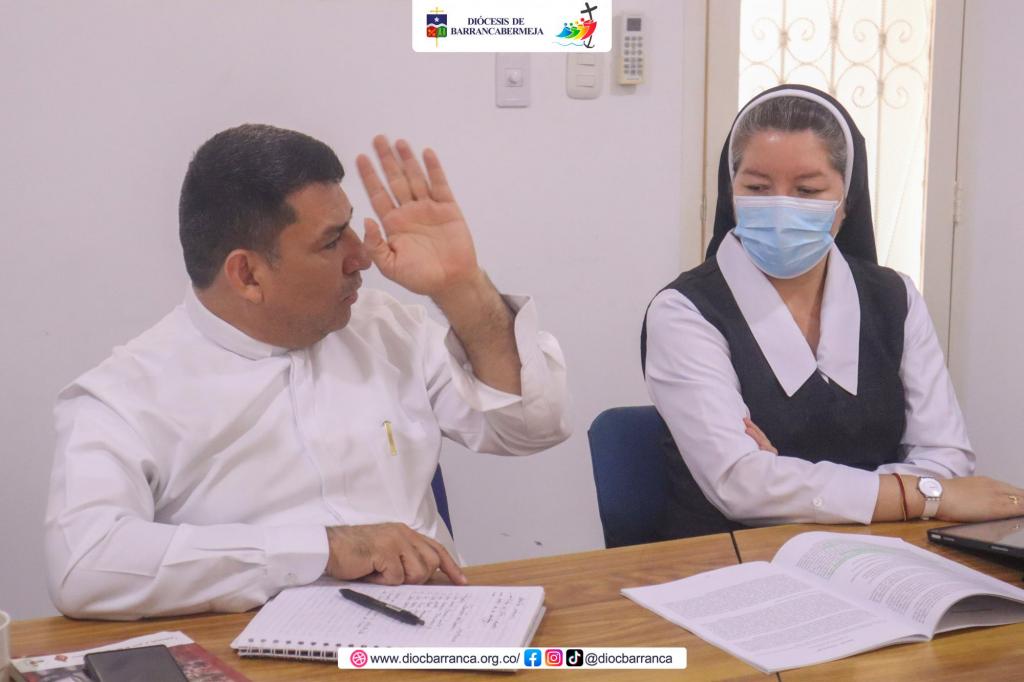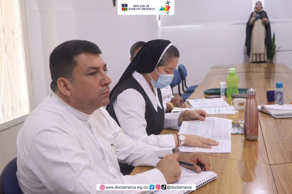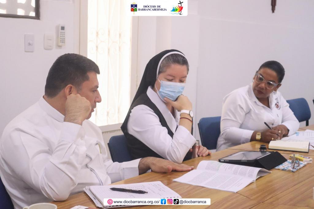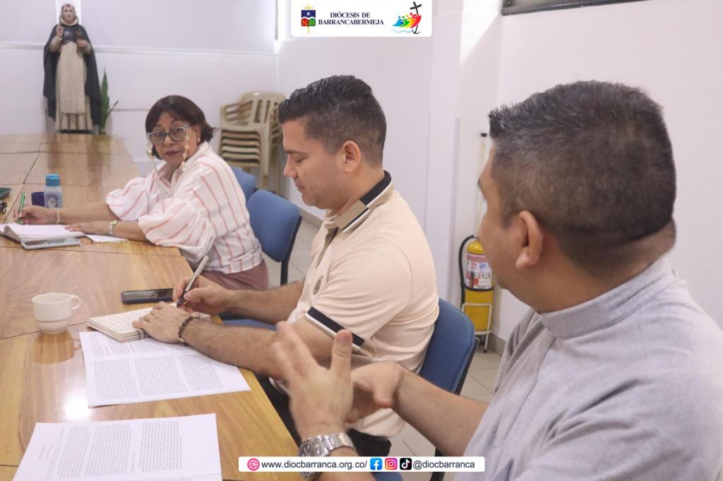En el salón San Luis Beltrán de la Curia Episcopal se reúne la comisión de aplicación del Sínodo en la diócesis, cuyo objetivo es guiar la implementación de las indicaciones dadas por la Iglesia en el documento final del Sínodo de la Sinodalidad, comunión, participación y misión.