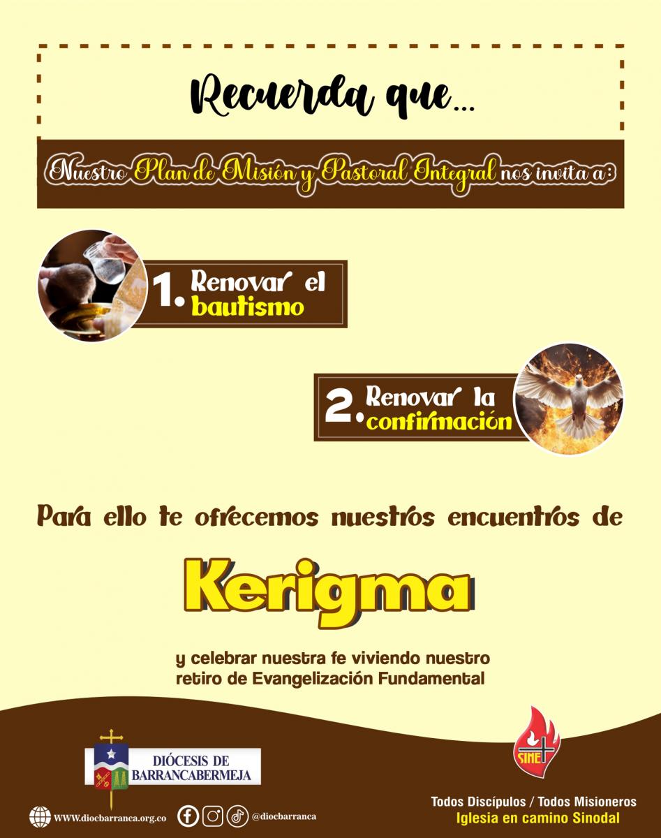 Recuerda que nuestro Plan de Misión y Pastoral nos invita a renovar el bautismo y la confirmación. Para ello te ofrecemos nuestros encuentros de Kerigma y celebrar nuestra fe viviendo nuestro retiro de Evangelización Fundamental.