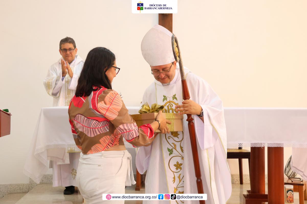 Sacerdotes, colaboradores de la Curia Episcopal y su señora madre, nos reunimos para agradecer a Dios por su vida y ministerio en una Santa Eucaristía. Al finalizar se le hizo entrega de un detalle y luego vivimos un compartir fraterno.