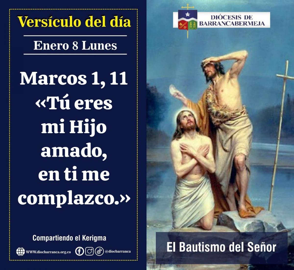 En aquel tiempo, proclamaba Juan: “Detrás de mí viene el que es más fuerte que yo y no merezco agacharme para desatarle la correa de sus sandalias. Yo los he bautizado con agua, pero Él los bautizará con Espíritu Santo”. Y sucedió que por aquellos días llegó Jesús desde Nazaret de Galilea y fue bautizado por Juan en el Jordán. Apenas salió del agua, vio rasgarse los cielos y al Espíritu que bajaba hacia Él como una paloma. Se oyó una voz desde los cielos: “Tú eres mi Hijo amado, en ti me complazco”.