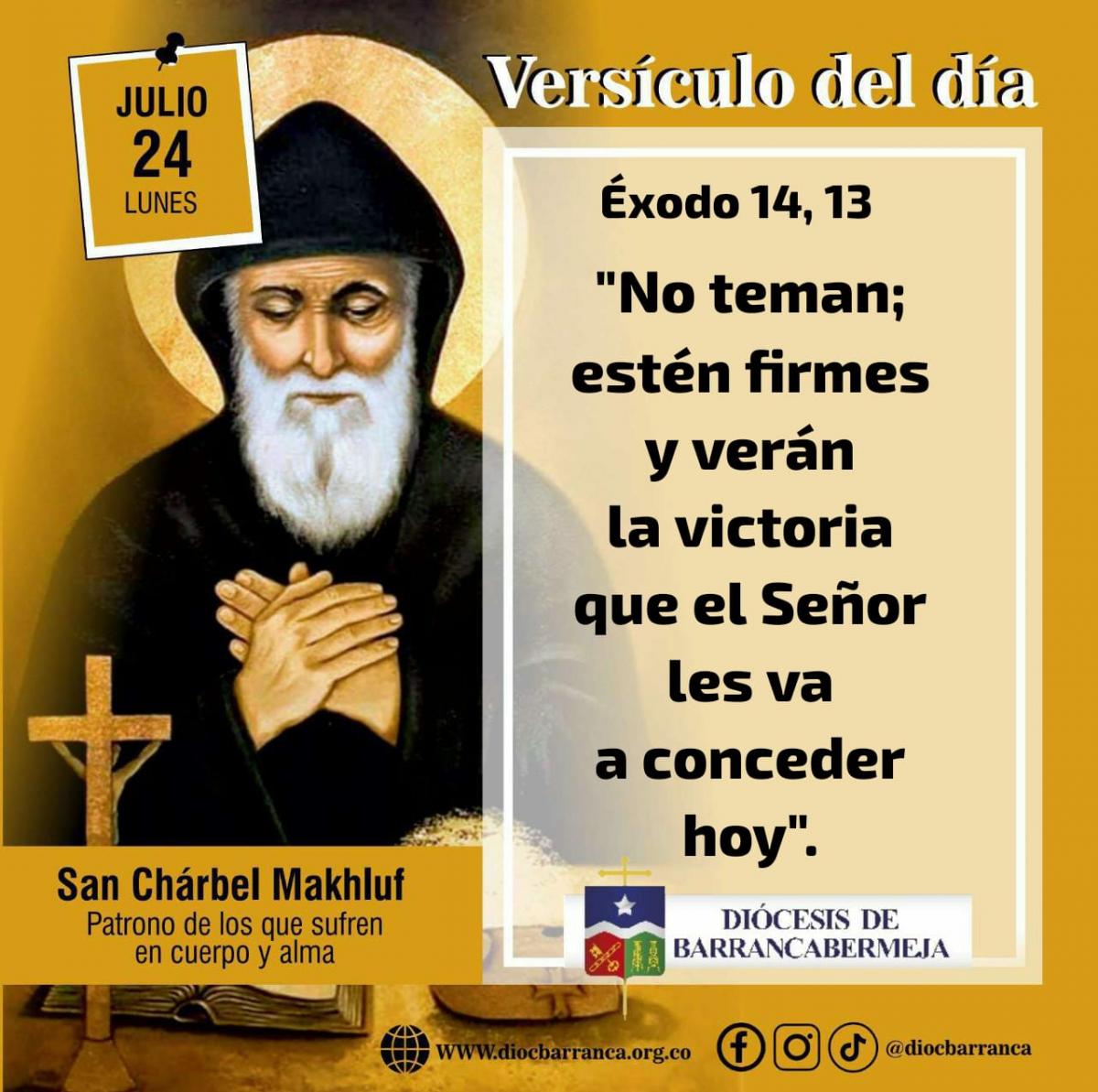 • Cantemos al Señor, sublime es su victoria: / caballos y jinetes arrojó en el mar. / Mi fortaleza y mi canto es el Señor, / Él es mi salvación; / Él es mi Dios, y yo lo alabaré, / es el Dios de mis padres, y yo le cantaré. R/.