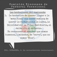 El fin o cometido principal de esta Comisión, es el acompañar en el proceso de discernimiento vocacional a cada una de las personas que sienten, de manera especial, el llamado a la vida sacerdotal o consagrada. Este acompañamiento se lleva acabo a través de los Encuentros Vocacionales, que permiten brindar a sus participantes el espacio y material adecuado para el ejercicio del discernimiento personal, en ambiente de oración, diálogo y sinceridad.