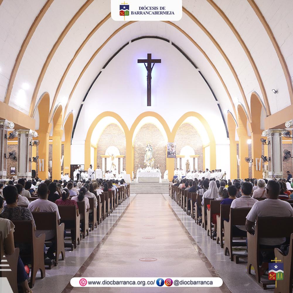 Monseñor Ovidio Giraldo Velásquez, Obispo de la Diócesis de Barrancabermeja, quien presidió la Santa Eucaristía, compartió su gozo espiritual por la gracia de poder celebrar con la presencia de los fieles de la Diócesis. A su vez, hizo la invitación a celebrar la fe de manera presencial, pero sin olvidar los protocolos de bioseguridad y todos los cuidados necesarios hasta que pase de manera definitiva la pandemia del Covid-19.