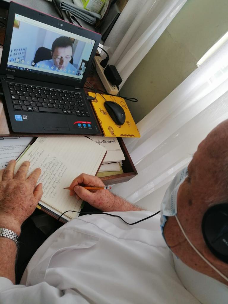 Qué ejemplo tan bonito, nos da un Sacerdote de 83 años, obediente a su Señor Obispo... Tanto en la mañana como en la tarde, el Padre Camachito se ha conectado a los Retiros del Clero 2020 en la "virtualidad", con sus audífonos para escuchar a Monseñor Ovidio y con lapicero y libreta en mano, tomando atenta nota. Que el Señor y la Virgen Santísima lo iluminen siempre... muy bonito testimonio de Vida Sacerdotal