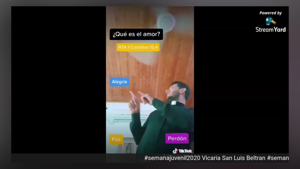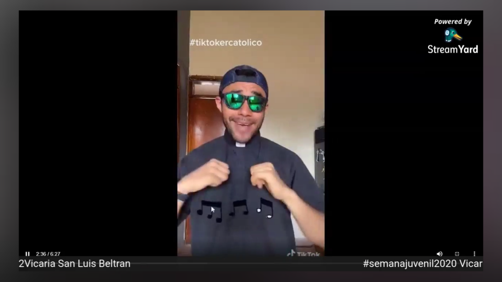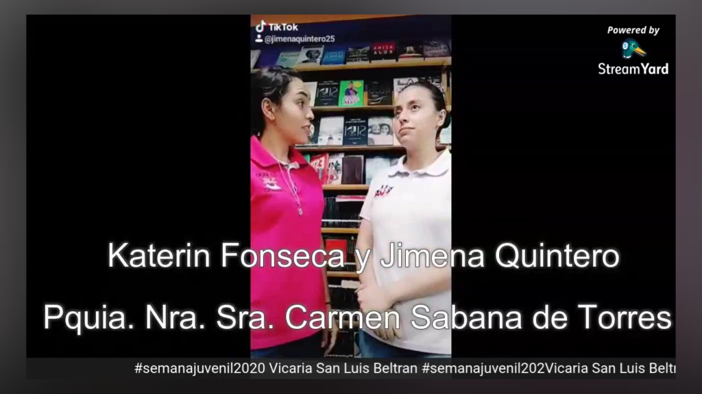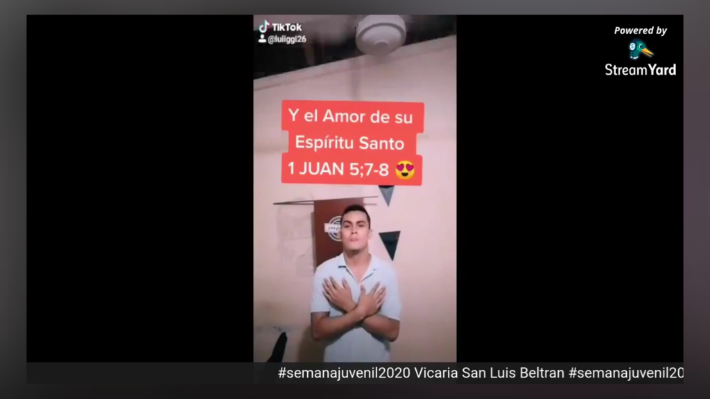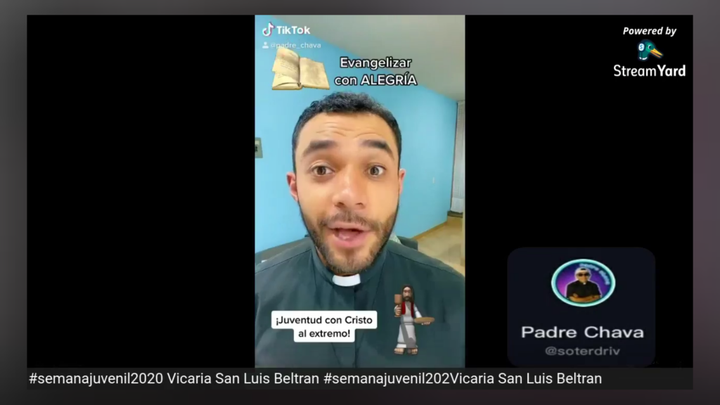 Agradecemos a Santiago Zapata, Animador Vicarial, al Padre Roberto Reyes, Asesor Espiritual de los jovenes de la Vicaria San Luis Beltrán. Así mismo a los jóvenes de los grupos Kairos de la Parroquia Nuestra Señora de Dolores y NAIN de la Parroquia Cristo Rendentor, por llevar a cabo la noche de TikTok y motivar a los diferentes grupos de la Diócesis para que participaran entregando mensajes de vida y esperanza a traves del amor de Dios.