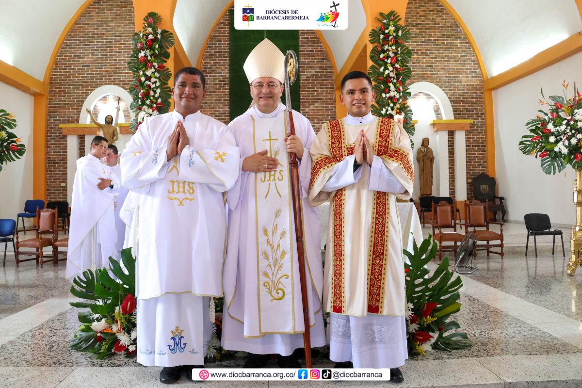 ¡Tenemos dos nuevos Diáconos! Para la gloria de Dios y el servicio de la Iglesia, el pasado sábado 28 de junio, en una Solemne Eucaristía presidida por Monseñor Ovidio Giraldo Velásquez, Obispo de nuestra Diócesis de Barrancabermeja; Brayan Steven Mayorga Almeyda fue ordenado como Diácono Transitorio y Lácides Rafael Mesa Pérez como Diácono Permanente.