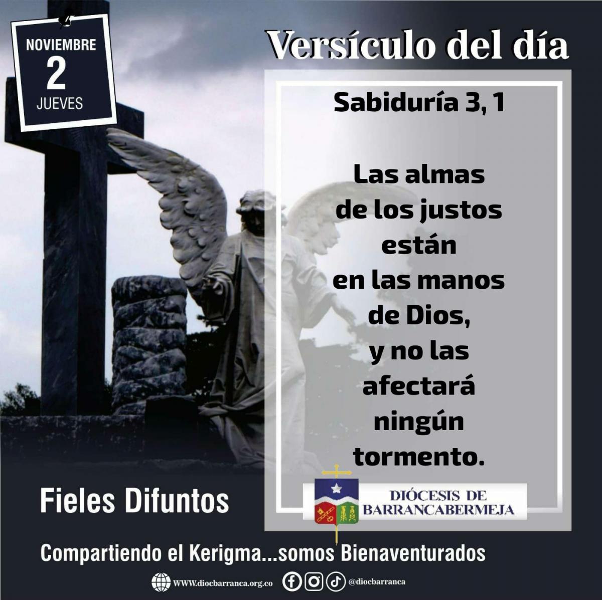 Las almas de los justos están en las manos de Dios, y no las afectará ningún tormento. A los ojos de los insensatos parecían haber muerto. Su salida de este mundo fue considerada una desgracia, su partida de entre nosotros, una destrucción. Ellos, sin embargo, están en paz. Aunque a los ojos de los hombres hayan sido castigados, su esperanza está llena de inmortalidad. Por una leve corrección, recibirán grandes beneficios, porque Dios los puso a prueba y los encontró dignos de Él. Los probó como el oro en el crisol y los aceptó como holocausto. Los que confían en Él comprenderán la verdad, y los que le son fieles permanecerán junto a Él en el amor, porque los elegidos del Señor gozan de su amor y de su misericordia.