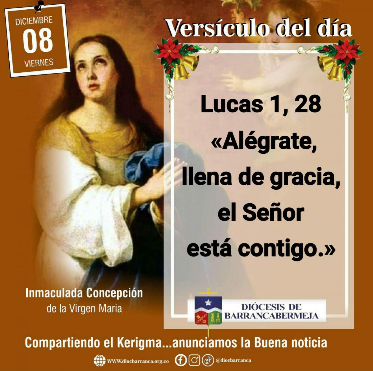 El ángel, entrando en su presencia, dijo: «Alégrate, llena de gracia, el Señor está contigo.»